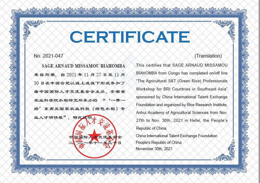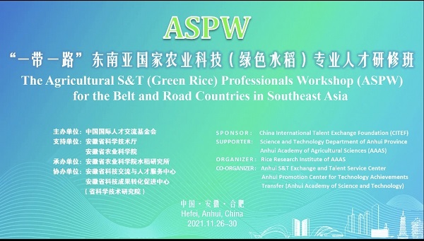 11月27日至30日,由中国国际人才交流基金会主办、安徽省农业科学院水稻研究所承办的“一带一路”东南亚国家农业科技(绿色水稻)专业人才研修班在合肥拉开帷幕。我校20级、21级农艺与种业专业外籍研究生线上参与研修班。