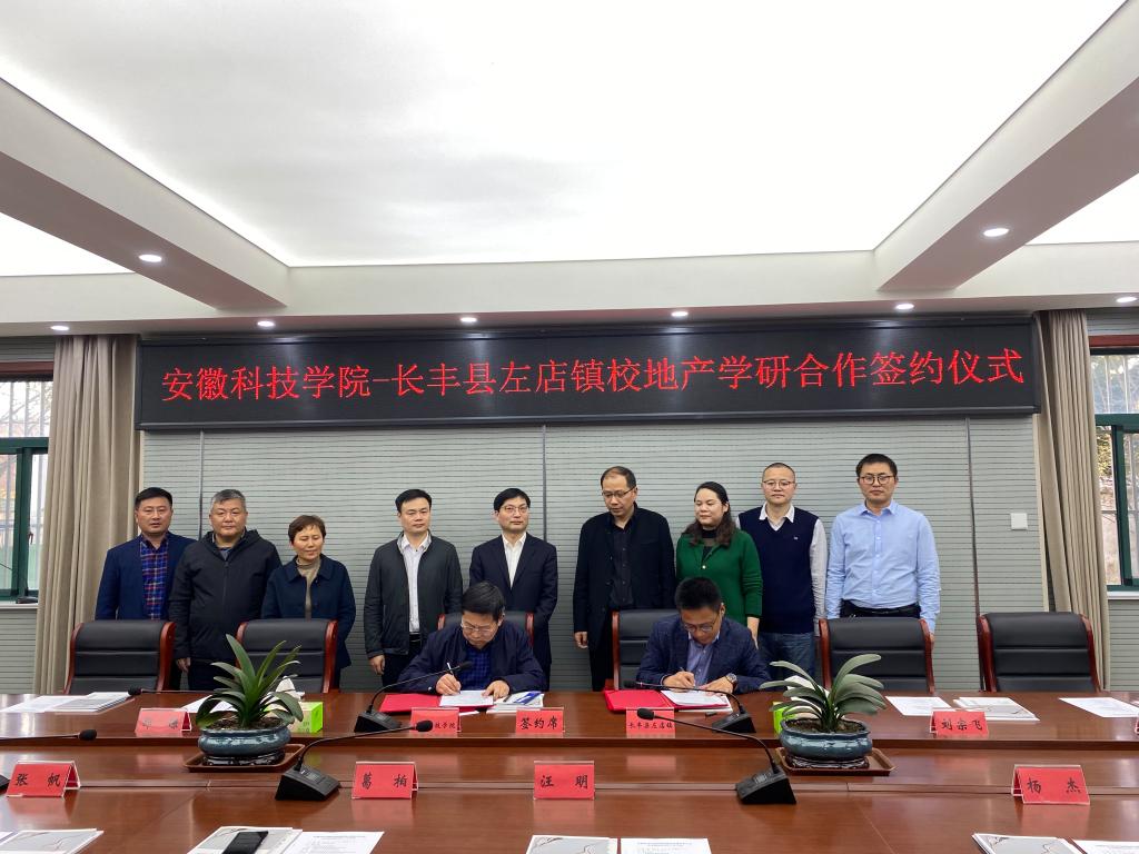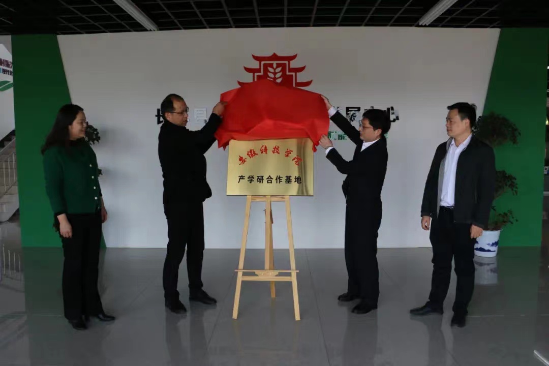 丁景良、陈传万一行在葛柏的陪同下,参观了长丰县北部电商中心、左店镇路桥社区神安草莓园、淮光1992研学中心。双方在左店镇政府签订了《安徽科技学院—合肥市长丰县左店镇校地产学研合作协议》,同时举行了产学研基地揭牌仪式。仪式结束后,召开了校地合作座谈会,长丰县科技局局长张帆、县农技推广中心副主任李必翠,左店镇党委书记葛柏等镇领导和相关创业大学生代表、专业合作社负责人参加了座谈会。
