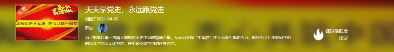 本次活动使用易班APP线上建立优课课群为同学们提供党史学习平台。在完成阶段学习后,将会在线上开展党史知识竞答活动。在党史学习中同学们可以忆苦思甜,了解我们今天的幸福生活来之不易,从而传播理想信念,传承红色基因。通过学习党史,让同学们更深刻理解“没有共产党就没有新中国”这句话的真谛,从而增强信心,增强爱党爱国的自觉性和认同感。