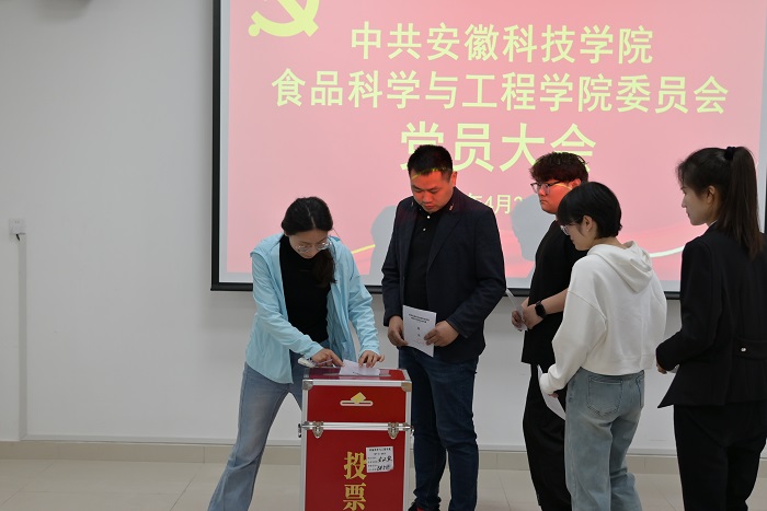 为做好中共安徽科技学院第四次代表大会代表选举工作,4月21日下午,食品科学与工程学院在阶梯教室101召开全体党员大会。会议由学院党委书记付光玺主持。
