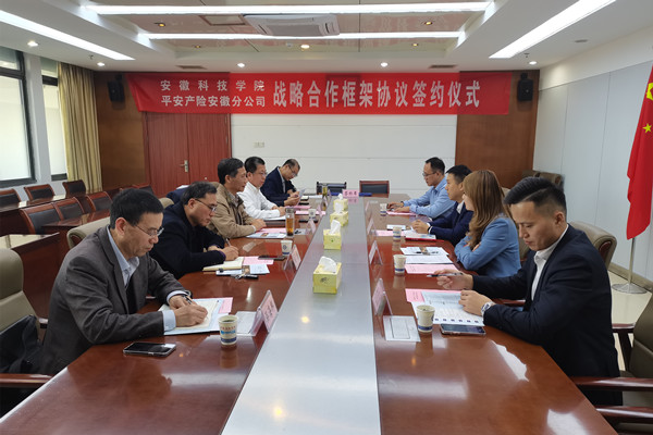 招生与就业工作处副处长何晓冬代表学校与平安产险安徽分公司签署校企战略合作协议。据悉,安徽科技学院有70余位毕业生在平安产险安徽分公司就业。平安结合学校优质的人才培养质量和安科学子综合发展情况,将学校纳入平安“优才院校”库,开启了学校与平安产险安徽分公司全面战略合作新篇章。校企双方将围绕资源整合、人才培养、社会服务、技能提升、就业创业等主题进行深度合作。